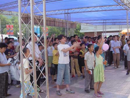 臺下連小孩子也熱情非凡,每人還帶上一塊商科集團的奧運活動的標貼,支持奧運、支持商科。