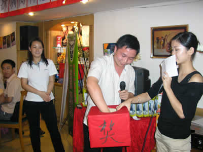 拿了獎品還不表演個節目,快點!