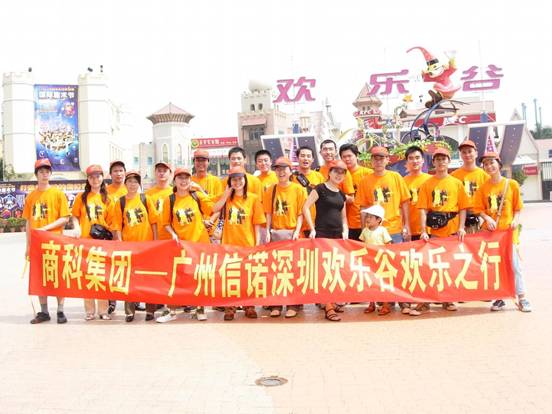 9月22日,一個陽光明媚的日子,為了感謝廣州信諾在8月份突出的銷售成績,廣州商科特意安排了深圳歡樂谷一天游,與信諾全體員工出外游玩,充分體現了廣州商科與經銷商之間親密無間的合作關系。下面隨著我們的鏡頭一起游覽吧: