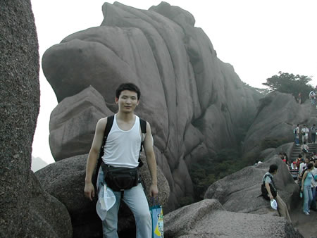 為了節省體力,大家一同坐纜車到達了玉屏峰,此峰可真是人山人海,寸步難移。圖中的松樹,既是大名鼎鼎的迎客松了。