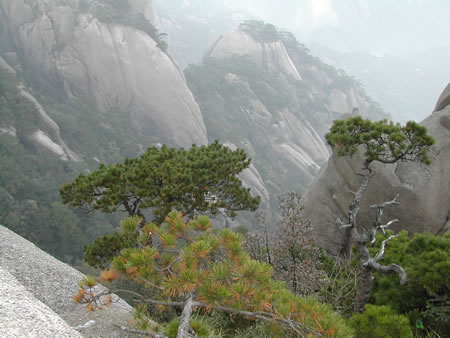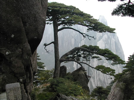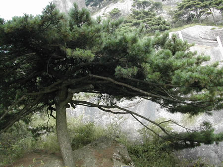 黃山除了山有名,松樹也是很有特色的,這棵就是有名的破石松。
