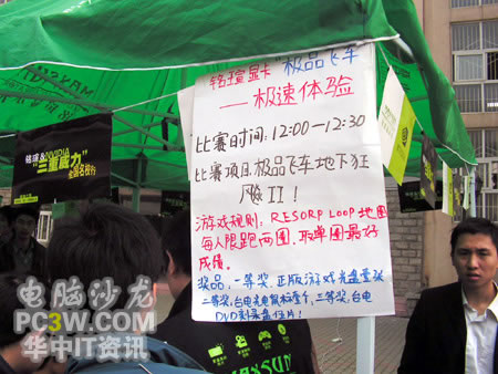 第一個進行SLI平臺體驗的竟然是一位MM,果然是巾幗不讓須眉啊。看她熟練的玩著極品飛車地下狂飆2,小編也不由感慨,這里不愧是華中地區最好的理工科學府啊,果真的臥虎藏龍。