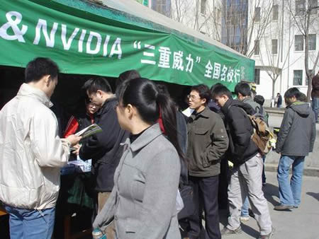 新春尹始,銘瑄攜手NVIDIA三重威力全國(guó)名校行活動(dòng)經(jīng)過(guò)廣州、南昌、成都、重慶、深圳、武漢、南京、上海、杭州、西安等站之后,又來(lái)到素有"東方莫斯科"之稱的北方名城哈爾濱市。此次活動(dòng)正值開學(xué)之際,廣大學(xué)生正為新學(xué)期做著積極準(zhǔn)備,IT產(chǎn)品已成為學(xué)生們學(xué)習(xí)生活中不可或缺的部分,很多學(xué)生都是選擇在此時(shí)為自己配上一臺(tái)心儀的電腦。活動(dòng)將從2月20日開始,至3月30日結(jié)束,為期超過(guò)一個(gè)月,將在全國(guó)13座城市,包括清華、人大、浙大、中大等在內(nèi)的25所名校展開。