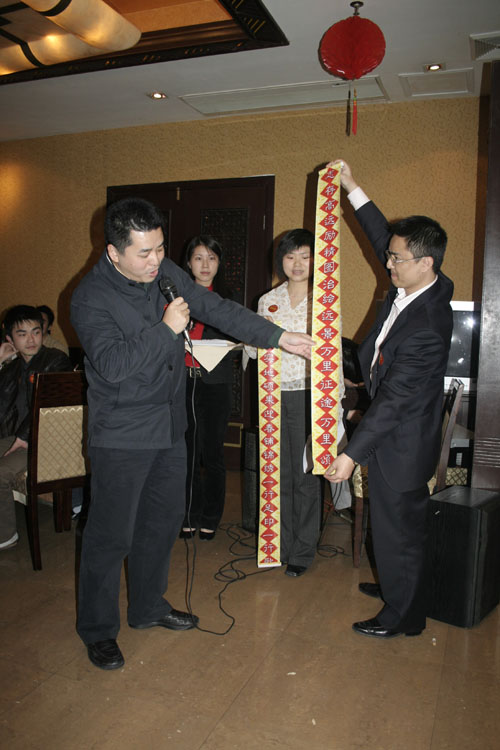 表彰大會結束后,進入了豬年迎春晚會的階段,首先進行了傳統風味濃郁的對聯節目。