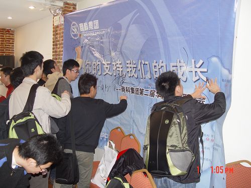 在會議結束的最后,我們請上了所有的媒體精英們在我們準備的背景板上寫下了對商科的祝福,明天會更好!
