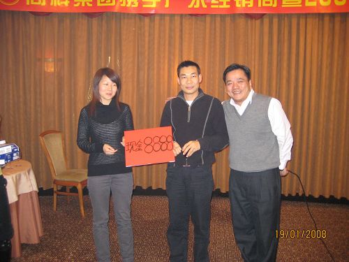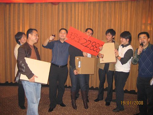 接下來,也是最激動人心的時刻,由商科集團董事長 孫武源先生頒出第四組2007年“年度優秀代理商”,共4名。他們每人除了獲得萬元現金外,還獲得一臺名牌筆記本,獎品真是太豐富啦!