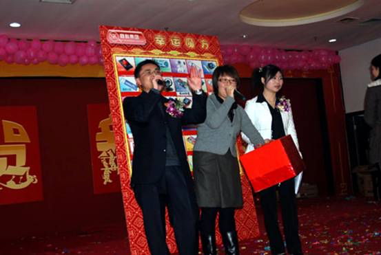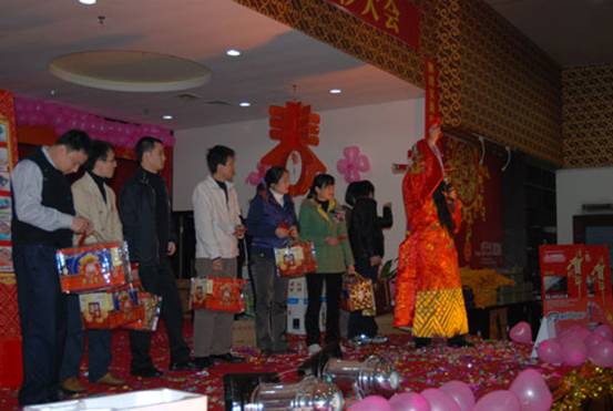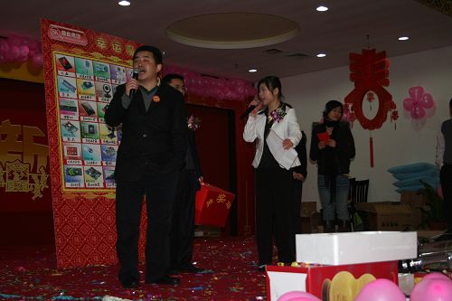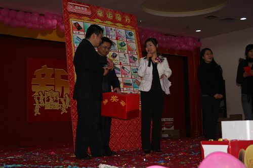 抽獎單元持續進行了兩個多小時,現場氣氛非常火熱,大家都懷著期盼和興奮的心情期待著自己的禮物。公司準備的非常豐富,再加上公司孫總、熊總、劉總等領導層及各位產品經理不斷輪流上臺為大家奉獻額外的現金大獎,使得中獎率高達95%以上,幾乎每個同事們都拿到了屬于自己的新年禮物。