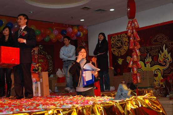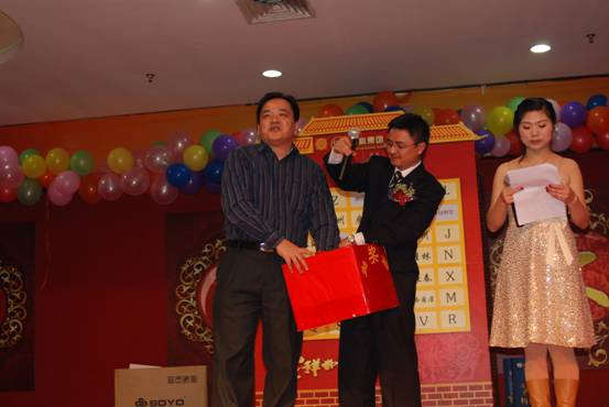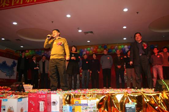 在歡聲笑語中,在聲聲祝福聲中,同事們喜氣洋洋的領(lǐng)著自己的獎品及幸福的心情,離開會場。在這一個喜慶的晚會中,我們?yōu)檫^去一年中取得的成績感到驕傲,我們分享收獲的喜悅。我們?yōu)樾碌囊荒曜8#覀冦裤匠錆M希望的2009。讓我們共同祝福商科集團在新的一年里百尺竿頭更進一步,為公司、為員工、為經(jīng)銷商、為顧客、為社會做出更大的貢獻,讓我們共同努力,把世界變得更美好。