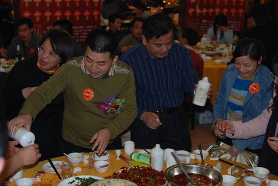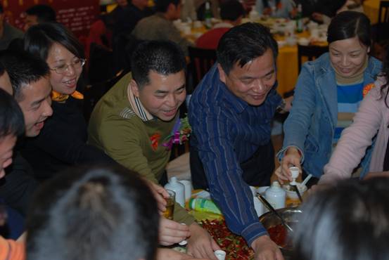 經(jīng)過2小多小時的文藝表演與游戲后,大家已經(jīng)饑腸轆轆,公司領(lǐng)導(dǎo)宣布晚宴正式開始,首先公司領(lǐng)導(dǎo)層向大家祝福。