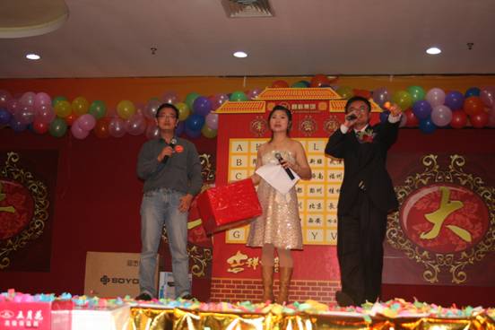 本次晚會商科集團準(zhǔn)備了豐盛的禮品和獎項,包括微波爐、IKEA家具、高檔廚具、名牌手表、高檔化妝品、現(xiàn)金等,而且各部門經(jīng)理也要為大家奉獻愛心現(xiàn)金獎,中獎率高度95%哦!