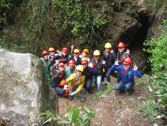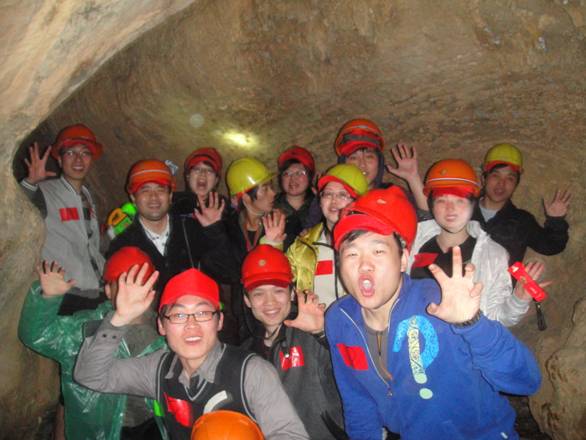 經過艱難的挑戰,大家在洞里露出了勝利的微笑。