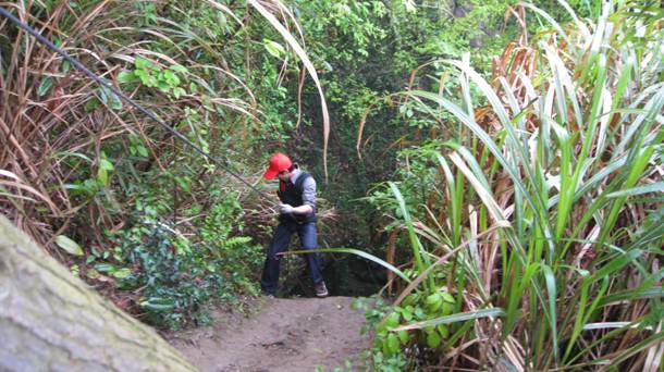 在山上經過簡短的休整,我們繼續挑戰臥龍洞。這是一個半開放狀態的崖洞,在水流湍急的地方架起了一些竹橋,大家還是非常自覺的互相幫助,只聽到洞里不斷傳來:“當心頭。。。這里滑。。。褲腳要卷高些,這里水急。。。當心。。。”等等的提醒聲。冰冷的泉水穿過腳踝,大家全濕了鞋,但心里的溫暖遠遠超過身體的溫度。