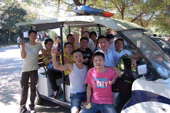在小梧桐山頂,我們觀賞著山頂自然風光。山頂管理處巡邏警車,被我們一群人占領,拍個全家福。