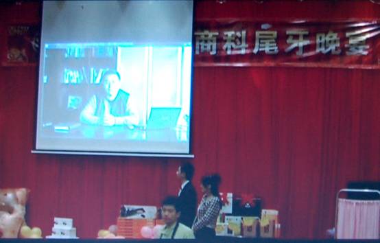 商科集團總經理孫武源先生的聲音響徹會場,投影布上出現孫總為在座的各位經銷商朋友致辭的畫面,DV畫面里孫總對2010年深圳商科的工作做出了肯定,對2011年商科的發展態勢表示樂觀,并祝福各位經銷商朋友兔年大吉大利。大顯身手。財運亨通。事業興旺。全家幸福!