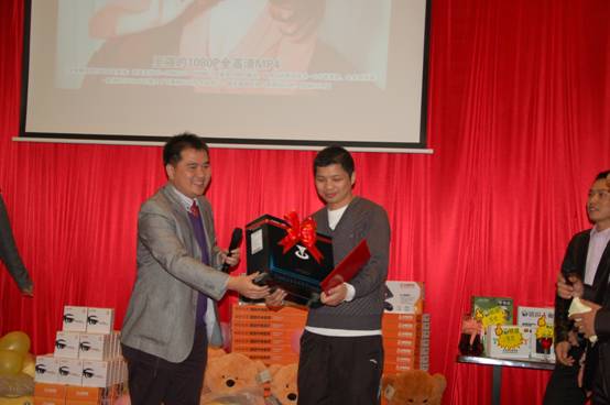深圳分公司余經理上臺為晚宴抽取了五名三等獎,獎品分別為梅捷主板一塊、銘瑄主板一塊、銘瑄顯卡一塊、臺電移動硬盤一個、臺電MP4一臺;