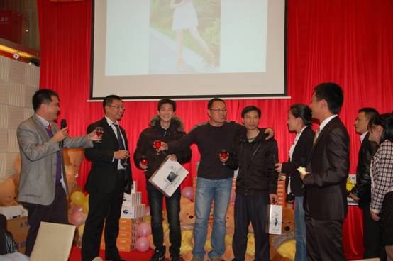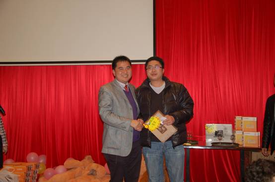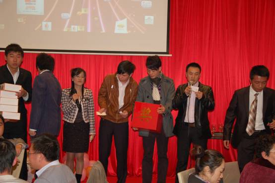 晚宴現場還同時進行了抽獎活動,獎品尤其豐厚,總部產品事業部趙愛軍經理。賈慶楓經理上臺抽取四個特別獎,并為獲獎者頒發獎品;