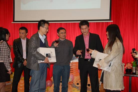 最佳復合客戶獎 晚宴現場還舉行了經銷商頒獎儀式,“風雨同舟獎”“最快成長獎”“最佳復合獎”;公司余經理代表商科給三位獲獎的經銷商朋友頒發了證書和獎品,并與獲獎者一起合影留念。