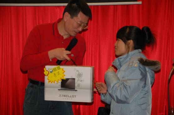 隋振遠先生上臺為晚宴抽取一等獎一名,獎品為臺電筆記本一臺;