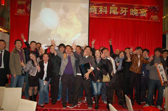 2010年深圳商科尾牙晚宴圓滿舉行 2011年1月12日,深圳商科邀請了“臺電”“梅捷”“銘瑄”三大品牌的經銷商朋友,其中包括關內.關外的傳統IT渠道以及網絡。商超渠道200余人,在華發北路菜根香酒樓成功的舉辦了“2010年深圳商科尾牙晚宴”。