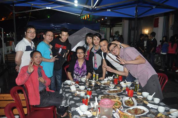 你瞧,滿桌子殘羹狼籍那就是我們的杰作。。嘿嘿