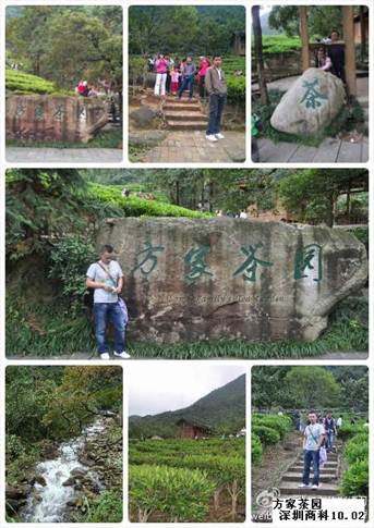 據(jù)當(dāng)?shù)貙?dǎo)游介紹,“方家茶園”乃是香港無線電視臺(tái)《茶是故鄉(xiāng)濃》的外景拍攝地,因?yàn)橘R州姑婆山良好地氣候和土質(zhì)等因素,造就了無污染的高山云霧茶---方家茶葉;走進(jìn)依偎在群山中的“方家茶園”時(shí),呈現(xiàn)在眼前的是一起一伏、郁郁蔥蔥的茶葉在十月溫暖的陽光下綠波閃耀的美景。。。