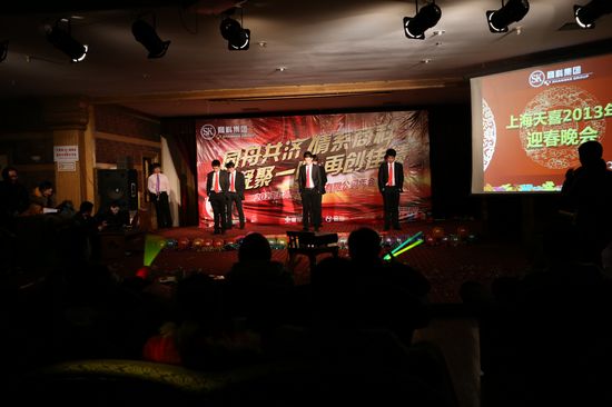 2013年1月13日上海分公司在坤明湖度假村召開了一場別開生面的年度總結會。會議包括上午的“2012年度總結會議”、下午的“室內激情拓展活動”還有晚上的“2013年天喜春節聯歡晚會”。