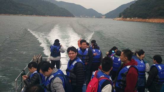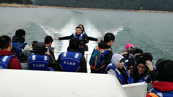 到了郴州,怎么能少了東江湖。次日,我們踏上了去東江湖的旅途。話不多說,一輪早餐過后,大家便坐上了游船,出湖感受一下湖周的美麗風景,在觀望美麗的風景的時候,我們同時也感受到了湖里強勁的風力。看,大家的頭發都吹亂了啦!