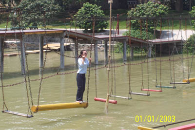 來個“金雞獨立”架勢,挑戰自己的勇氣。