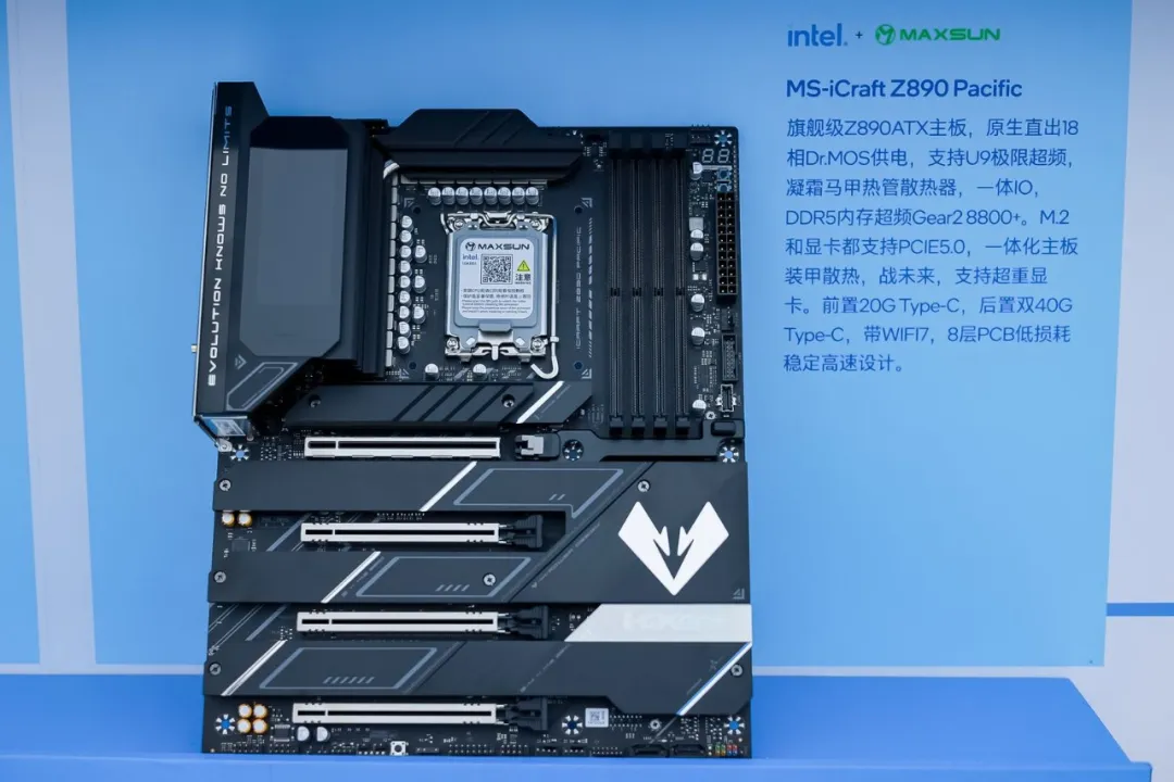 其中,在活動現場也有展出的MS-iCraft Z890 Pacific憑借出色的配置獲得了相當高的關注度。16+1+1相DR.MOS供電的強悍配置,充分發揮CPU潛能,配備4*高速DDR5內存插槽,超頻沖擊8800MHz,8層服務器級PCB有效降低信號損耗、增強信號完整性、助力DDR5高速傳輸。