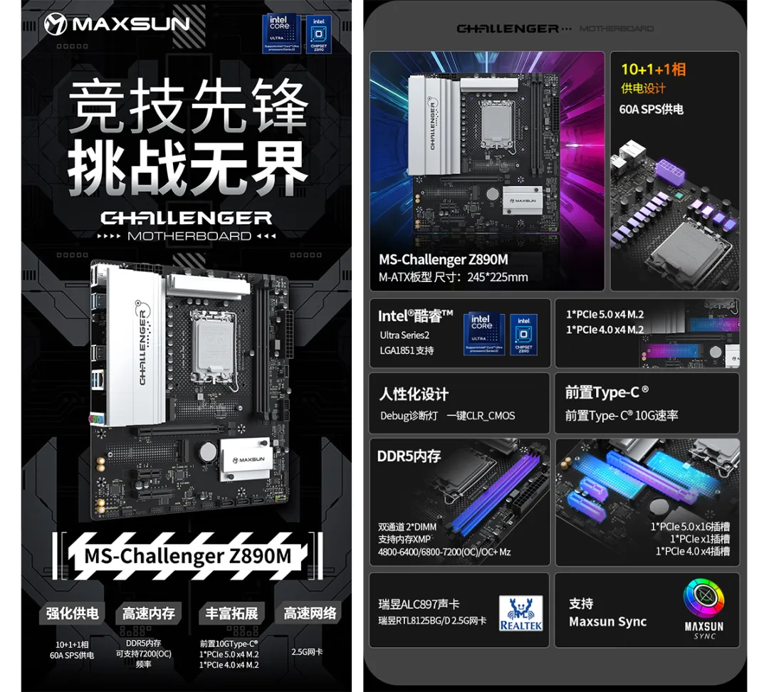 MS-Challenger Z890M主板,Z890系列的性價(jià)比優(yōu)選。采用10+1+1相60A SPS供電,更先進(jìn)的SPS技術(shù),更佳化每一相電源,電源調(diào)控更高效,充分發(fā)揮CPU潛能。內(nèi)存方面,配備2*高速DDR5內(nèi)存插槽,超頻沖擊7200MHz。同時(shí)具有備受好評(píng)的Debug燈和CLR_CMOS按鍵,人性化設(shè)計(jì)為用戶提供便利。