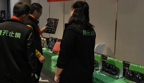 會議現(xiàn)場,展示了系列顯卡,新一代搭載英偉達圖靈架構(gòu)的RTX 20系列顯卡,具有第四代太極陰陽散熱系統(tǒng)、RGB燈效、定制背板、全新太極扇葉等多項功能,保證玩家在享受游戲刺激時仍然保持顯卡溫度低狀態(tài),滿足高端網(wǎng)吧的業(yè)務(wù)需求。現(xiàn)場的小伙伴們也迫不及待地進行了體驗。