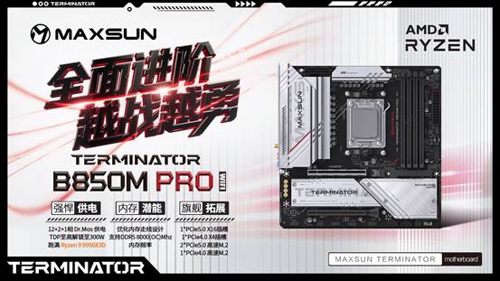 從澎湃的性能釋放到全面的擴展能力,從個性十足的外觀設計到便捷省心的裝機體驗,銘瑄 Terminator B850M PRO 系列主板憑借高性價比,成為歲末裝機的優質之選。搭配AMD 銳龍 7 9800X3D 處理器這一黃金搭檔,為《三角洲行動》等大型游戲提供堅實可靠的硬件保障。一黑一白兩款設計,更能讓你隨心所欲打造專屬個性化主機。這個元旦假期,就讓這套黃金組合助力你組建高性能游戲主機,在游戲世界中搶占先機,盡情享受硬件升級帶來的強悍體驗!