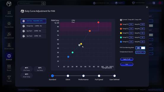 MS-Terminator B850M PRO II WIFI7 原生搭載了銘瑄全新的PTM UI BIOS。這款BIOS打破了傳統操作門檻,借鑒手機APP的交互邏輯,采用PTM設計理念(PC To Mobile),將所有功能模塊化后再進行聚焦式設計,讓所有交互層級不超過2層,手機端的卡片式體驗界面,讓用戶輕松、直觀、簡單進行個性化設置。無論新手還是資深玩家,都能輕松上手,快速調校出更佳的系統狀態。
